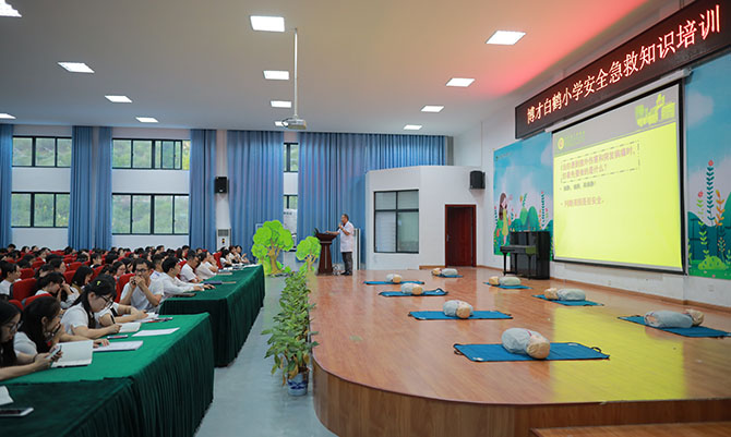 时间就是生命,发生意外突发事件,教师是一支不可忽视的现场救护“第一目击者”力量。9月23日晚,应博才白鹤小学邀请,捷克论坛 派出15名医护人员为该校的200名教师进行了急救知识培训讲座及操作技能训练。