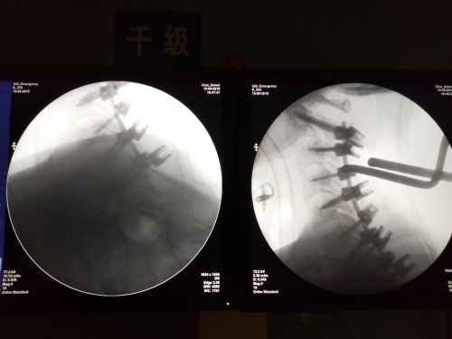 完善相关检查、分析讨论病情并制订手术方案后,沈雄杰教授带领团队为患者施行急诊全麻下颈椎后路减压复位植骨内固定术。手术前后历时6个小时,成功对骨折的颈椎与胸椎部位进行螺钉固定,缓解了碎骨片对脊髓的压迫。