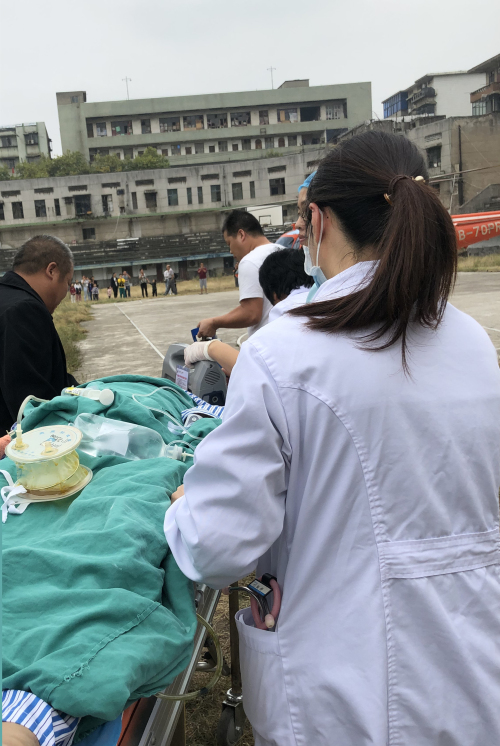 接到任务后,急诊医学科航空救援团队快速反应,随行救援医护人员利用自己的休息时间迅速到位,全程仅用了61分钟就圆满完成任务,把患者成功转运至重症监护室。