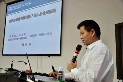 高小平教授以“重症动脉瘤性蛛网膜下腔出血处理策略”为题授课。