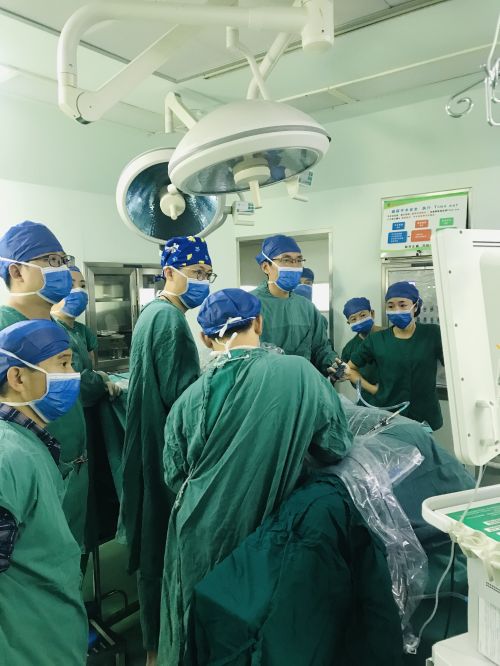 杨科主任为患者施行高难度后腹腔镜输尿管狭窄段切除、端端吻合术。
