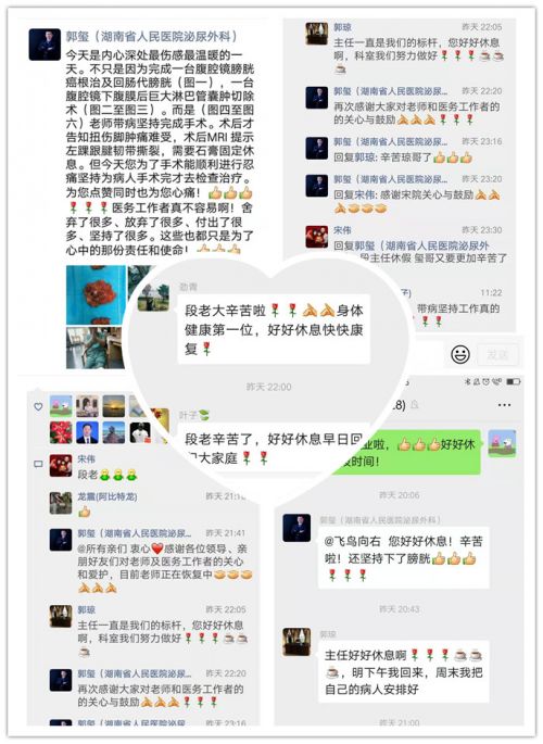得知段燚星主任受伤后坚持为病人做手术,最后坐着轮椅被推出手术室的消息后,同事和同行们无不为他的敬业和坚强所感动,纷纷在朋友圈和微信群为他点赞,大家说得最多的就是“敬业”“榜样”和“感动”!