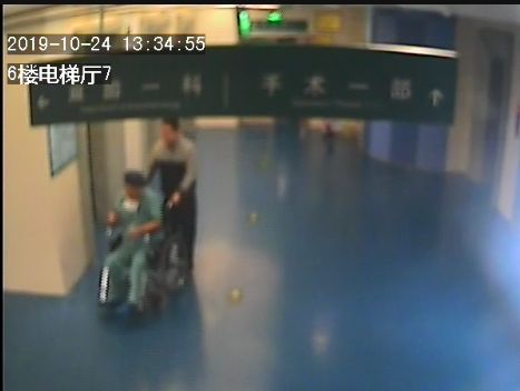 监控画面显示,段燚星主任坐着轮椅被推出手术室。