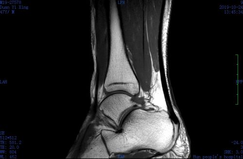 磁共振显示韧带撕裂、跟腱损伤。