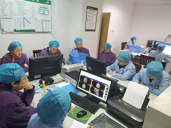应急救援专家组于26日12:30从长沙出发,经过近5个多小时的车程,抵达张家界。顾不上吃饭和休息,专家们下车之后立即前往张家界市人民捷克论坛 重症监护室查看患者。患者男性,49岁,脊髓损伤后高位截瘫,病情十分危重。专家组认为当前需要紧急完善核磁共振检查(MRI),以确定下一步治疗方案。因患者之前已经历过慈利县到张家界市一次转运,为避免导致二次损伤,确保安全,专家组成员寸步不离、全程陪同到放射科,完成了核磁共振。