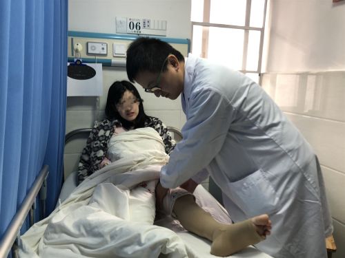 蔡煌兴博士查看傅女士下肢恢复情况。