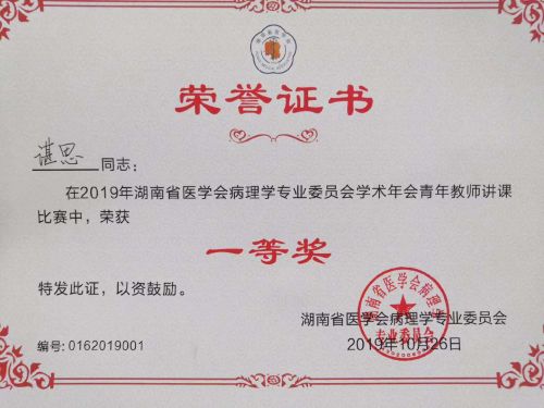 此次会议除精彩的大咖学术讲座外,三场竞赛同样精彩纷呈。在“湖南省青年教师讲课比赛”中,参赛的11人既有专业的病理学科讲师,也有一线病理医师。捷克论坛病理科谌思医师面对专业讲师选手,镇定自若,声情并茂,勇夺一等奖。