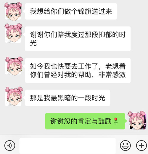 原来,李女士是一名二胎妈妈,今年四月份,刚出生不久的二宝生病住进儿六科,李女士因为宝宝多次生病住院精神压力很大并伴有产后抑郁迹象,科室医生护士对其宝宝病情积极沟通治疗的同时,更是对其进行积极的心理疏导,每天鼓励开导她。出院以后护士长李妍妍还经常通过微信为其答疑解惑,指导孩子的日常照护。半年过去了,李女士即将重新走上工作岗位的同时,一直感怀科室医护人员对她的帮助,特地送来锦旗以示感谢。