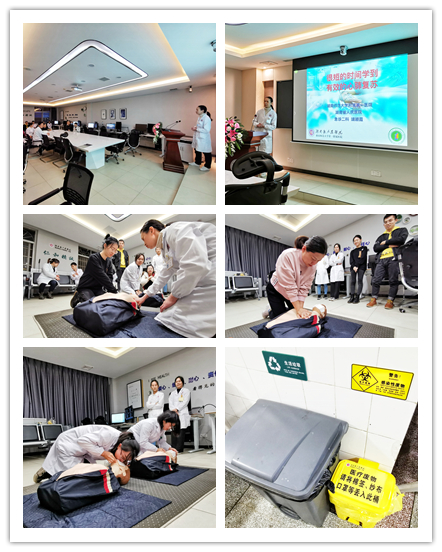 授课分理论学习和实际操练两部分进行。两位老师专业严谨,认真地向在在场学员讲解传授了最新的单人及双人心肺复苏技术。在两位老师的辅导和把关下,在场每一名学员都实操演练,确保每一个人都对心肺复苏技术切实掌握。