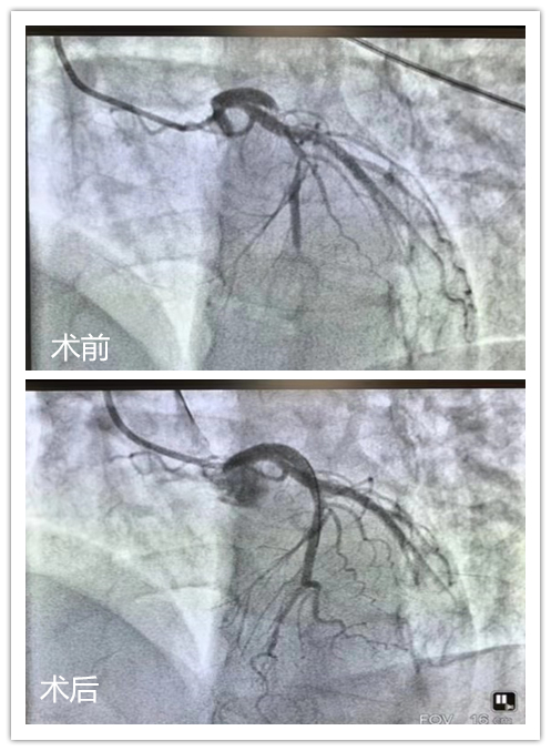 术中,可见患者左前降支急性闭塞,如果不打通这根犯罪血管,将随时有生命危险。心内五科罗巍副主任医师带领手术组立即对病变血管进行开通,植入支架一枚。术后,患者胸痛明显缓解。11月28日,许先生已经转至普通病房,并且喜笑颜开找到罗巍医师表示深深的感激。