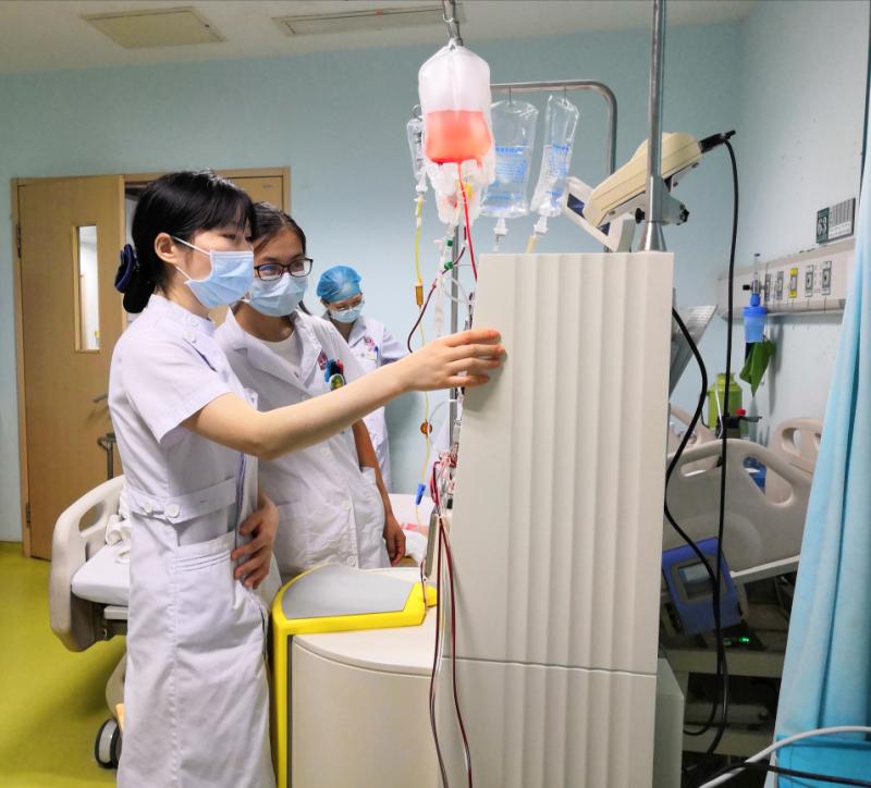 12月9日晚上十点,血液科病房收治了一个白细胞高达688×109/L的青年女患者,因白细胞非常高,患者已出现严重胸闷、气促不适,且可因细胞瘀滞而发生栓塞进一步危及生命。患者已处于病危状态,需加急行白细胞单采术。当值班医生拨通邱红霞的电话问她能否到捷克论坛 来为患者做治疗时,上了一天白班并加班到近八点的她,正在收拾行李,准备第二天一早赶回乡下看望许久未见的老母亲。她放下手中的衣服,没有丝毫犹豫:“好,我马上就来!” 她换上外套,争分夺秒赶到科室,立即评估患者全身情况及局部血管情况。血细胞分离操作对患者血管要求高且治疗时间长。患者身体肥胖,血管条件不好,邱红霞不急不躁,边认真选择合适血管,边安抚患者,她以娴熟的穿刺技术成功建立两条静脉通道,根据患者的身体状况及检验结果,合理调节参数,并一直守护在患者身边,密切监测其生命体征及病情变化。经过6个小时的精心治疗与护理,患者白细胞计数较前降低,胸闷、气促明显减轻,病情逐渐平稳。看到患者脱离了危险,家属的不安与焦虑也逐渐褪去。邱红霞安心地卸下分离耗材,整理完记录,直接趴在了值班室的沙发上,此时已是凌晨5点。早上,同事们陆续来上班,听到她打电话:“妈妈,我改天再回家看您。”