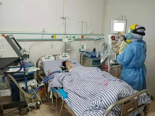 ,匆匆吃了盒饭,立即投入到了工作中。在讨论会上,专家们认真听取了患者的病情介绍,详细询问了流行病学史及诊疗过程,仔细查阅检查及检验资料。根据了解,这是一例危重症新冠肺炎的老年女性患者,出现了多器官功能衰竭,李文朴主任、梁玉梅主任就患者的诊断、病情评估给出了建议,并制定下一步的治疗方案。而杨桓进入一线病房,实地指导CRRT、ECMO的治疗,解决了操作技术上的难题,使体外生命支持治疗得以顺利实施,当天在一线病房工作达5小时,并继续留院支援以后续指导工作。(肾脏与免疫科 向平)