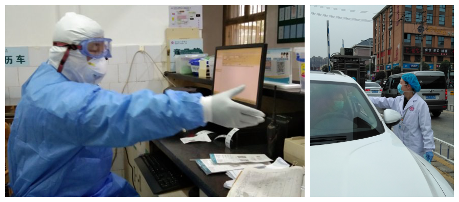 郑珏在隔离病房工作、郭珊妮在预分检点测量体温