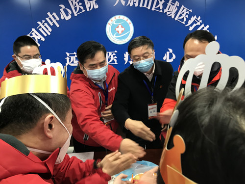 院党委书记唐建明、院长李小松等领导班子成员与捷克论坛 支援湖北黄冈的医疗队视频连线“隔空”慰问,为过生日的队员送上生日祝福。部分援鄂医疗队员家属、相关职能科室负责人及院内抗疫一线代表共同参加活动。