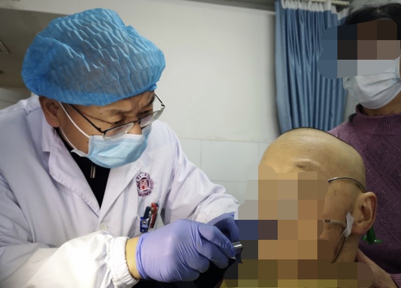 蔡华安主任表示,癌性伤口是慢性难愈合创面的一种类型,是由于癌细胞浸润导致表皮完整性受损而产生的原发性或转移性恶性皮肤伤口,伴随其出现的一系列生理、心理和社会方面的问题对病人、家属以及护理人员都是一个不小的挑战。在癌性伤口病人的管理中不仅要对伤口愈合过程、伤口护理理论和疾病过程中可能出现的伴随症状有所了解和掌握,更要特别注重病人的心理及社会需求。只有这样才可能将伤口的不良影响减少到最低,并最大限度提高病人的生活质量。 廖先生的伤口位于面部,大量面部组织的缺失严重影响了廖先生的外观,再加上伤口已经腐烂化脓,隔着很远都能闻到浓浓的恶臭味,不仅让家属感到难受,更能让病人产生尴尬、抑郁的情绪,觉得受人厌恶而逐渐自我封闭,与社会隔离。这可能是有关癌性伤口最难处理的问题之一,也是导致他们生理和心理压力产生的主要原因。因此,创面修复团队首先对廖先生的伤口进行彻底清洗,减轻异味,缓解其心理压力。因为面部神经丰富,痛觉敏感,再加上癌性伤口极易出血的特征,清洗时动作要非常轻柔,彻底清洗干净后再喷药,然后覆盖辅料。
