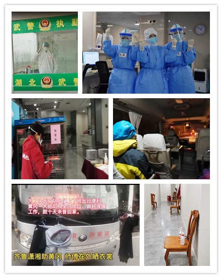 刚来黄冈的时候,我和队友李英因脱防护服时间太长,错过了凌晨1:30的班车,在寒风中冷得瑟瑟发抖,无奈之下打电话给车队大哥,结果不到十分钟,班车就出现在我们眼前。上车后一个劲地对司机说“不好意思让您多跑一趟”,司机师傅温和地说“没事没事”。黄冈车队的大哥们吃饭常常不在饭点,更没有固定的吃饭地儿,所以他们常常蹲在地上吃。担心感染家里人,他们十天半个月不回家,每天换洗的衣服在天气好的时候就把它们晾在雨刮器上。每每看到这些,泪水就不由地在眼眶里打转。