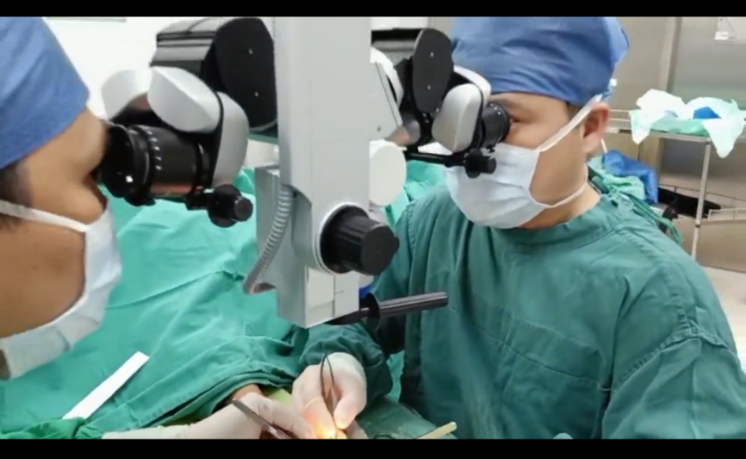 据接诊的主治医师邓淑华介绍,泽泽右环指末节离断伤,右环指自甲根部完成断离,断端内还有异物残留,右食指、中指末节指背多处皮肤软组织挫伤,情况紧急,医生立即为泽泽实施了右环指末节离断伤清创、再植术。我们团队曾为七个月大的孩子实施断肢再植术。泽泽也是实施断肢再植术中年龄比较偏小,孩子越小,血管越细。断肢再植最重要的是连通血管,有血供,断指才能成活,需要医生们在显微镜下操作。经过三个小时的紧张手术,顺利完成。因家人送来及时,且在黄金时期给泽泽做了手术,术后经过精心的治疗和细致的护理,目前泽泽的手指恢复良好。