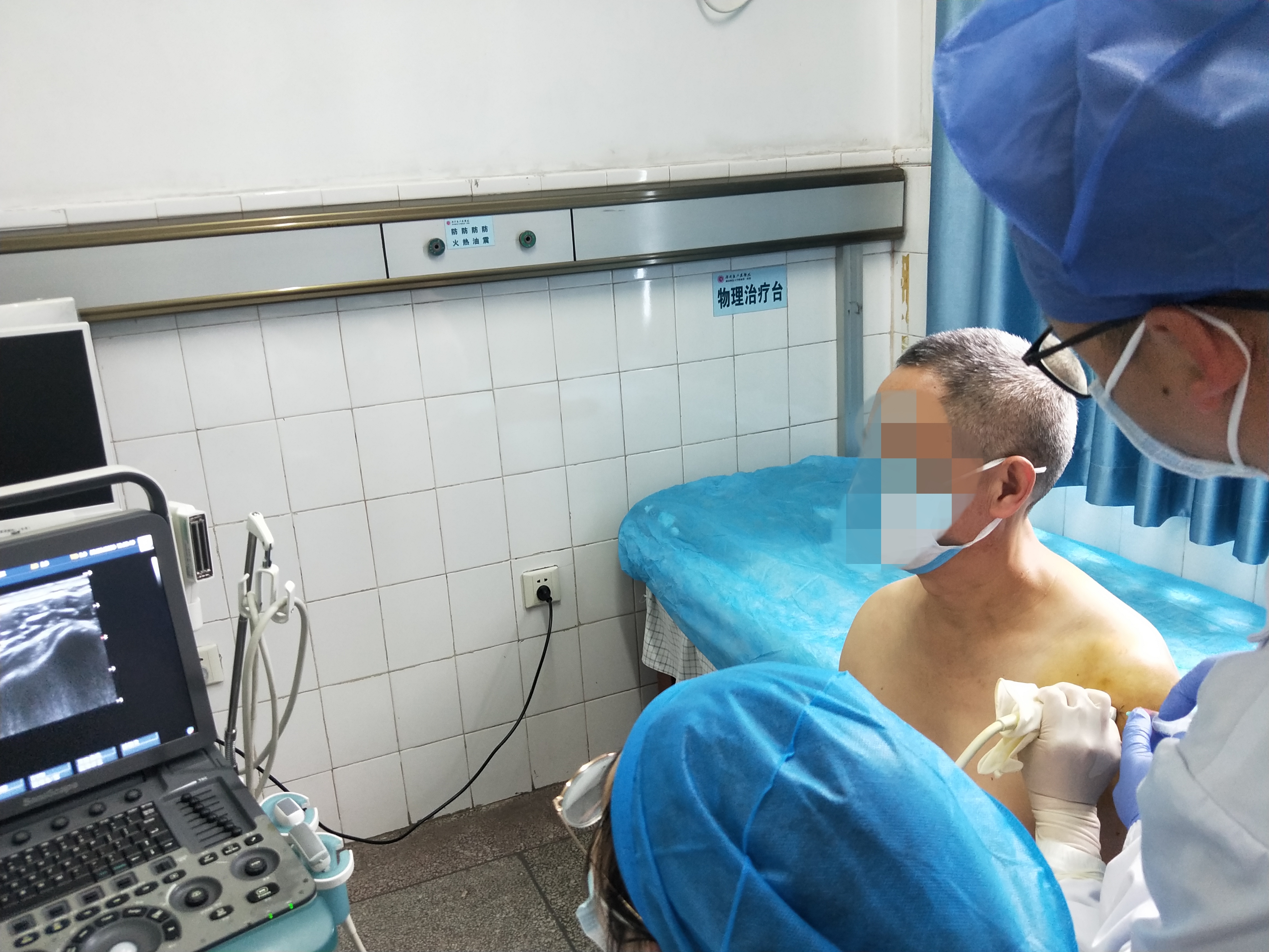 疼痛科门诊就诊,坐诊的曹启旺主任询问病史得知患者无外伤史,经常手提重物,家务又做得多,近期又经常做甩肩运动,为其认真体查,发现手不能举过头,不能反手,并为其完善相关检查,MRI结果显示肩袖损伤。与患者沟通后,为其实施了超声引导下疼痛治疗,治疗后肩部疼痛及活动障碍明显改善。