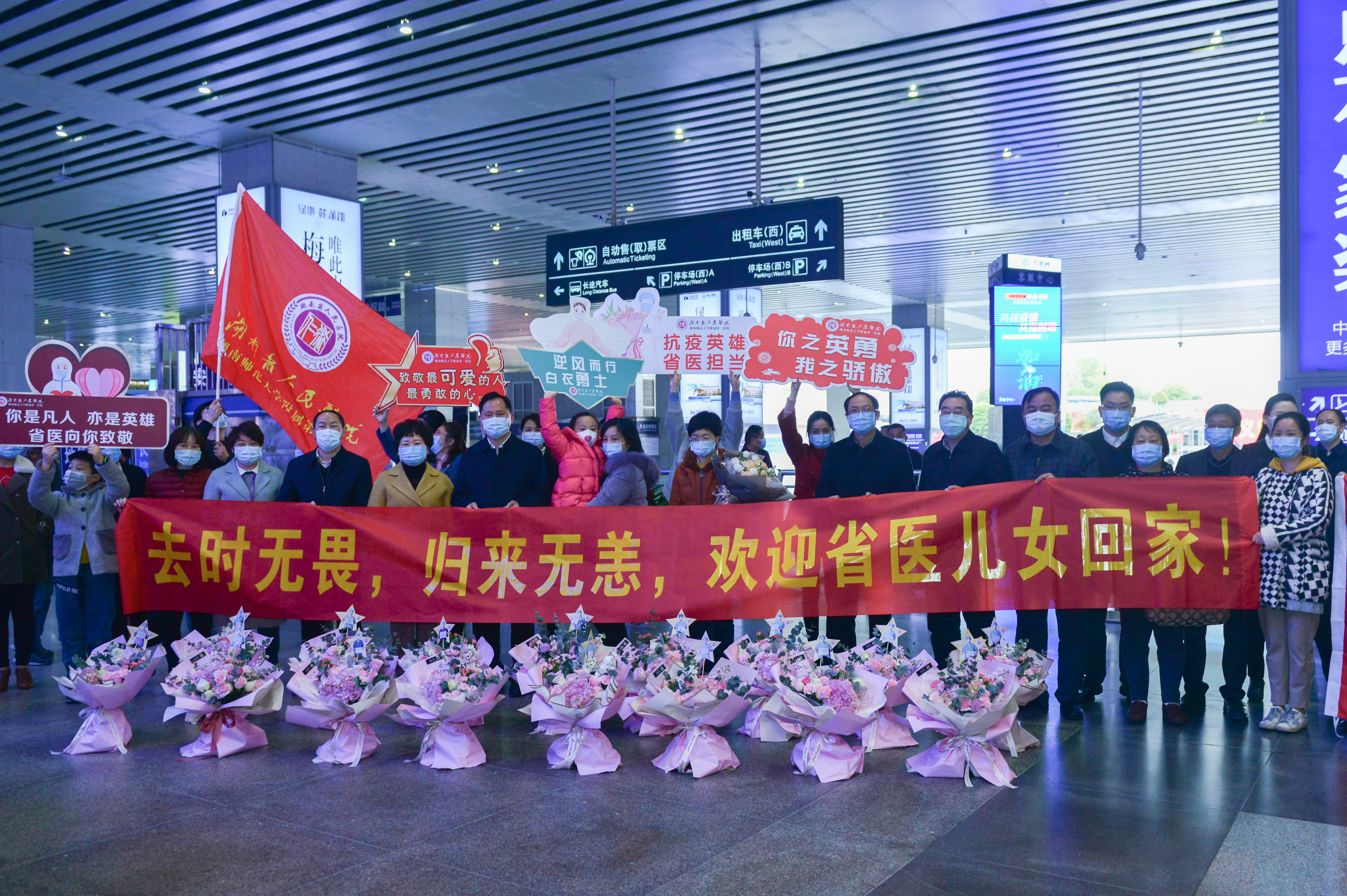 当日上午10时45分,医疗队到达长沙。在高铁站出站口,捷克论坛全体院领导及相关部门负责人、家属代表在高铁站出口处进行迎接。