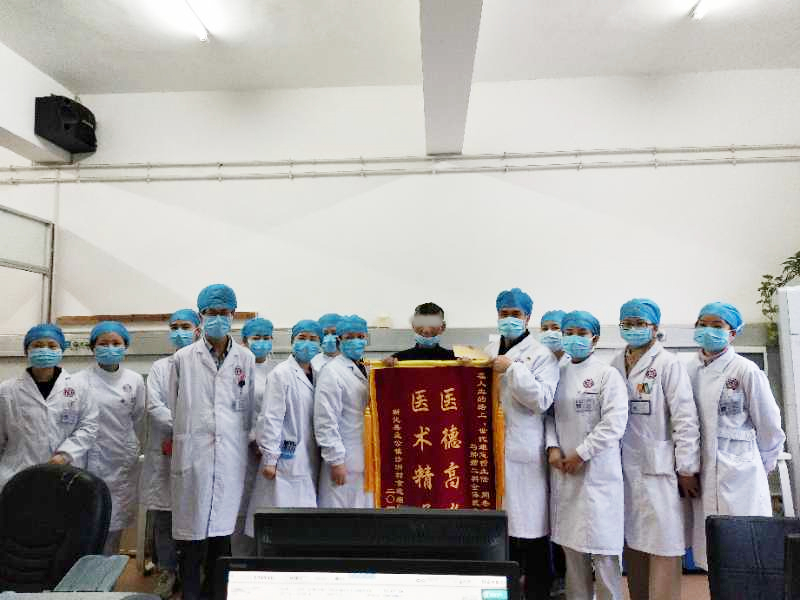 3月24日,家住新化县的伍嗲嗲,一大清早送来感谢信和锦旗,并且执意等所有医师护士到齐后,读他亲手写的感谢信,感谢全体医护人员的救命之恩。