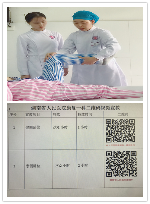 扫一扫,手机也能观看宣教视频了。近日,康复一科就根据患者康复护理需求、操作流程、宣教要点,自编自导自演拍摄制作了患者的良肢位摆放、体位转移、咳嗽训练、体位排痰训练、上下楼梯训练、穿脱衣训练等二十多个宣教小视频,用于康复患者及照护者的专科宣教。