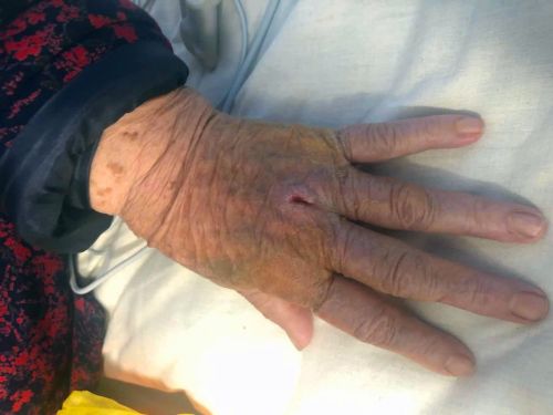 第二天,老人手背上的伤口出现红肿和渗出,涂了红霉素软膏后,为防止伤口被污染,还用纱布将伤口包扎起来。随后几天,老人伤口红肿的情况有所好转,却在事发10天后出现张口困难的情况,“嘴巴只能张开不到一指宽,吃不了东西,还出气不赢”。家人几经辗转,将老人送往捷克论坛 岳麓山院区急诊三科。