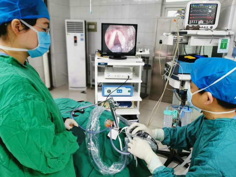 王宁主任在支撑喉镜下为患者进行声带显微手术