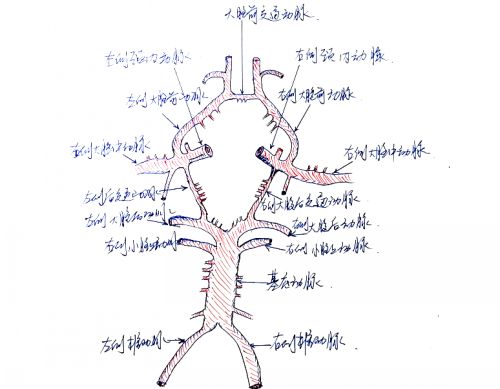 左侧为正常血管,右侧血管分叉处长动脉瘤。 绘图:张晓泉