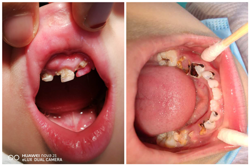 6岁的轩轩因“牙痛进食困难”到马王堆院区口腔二科就诊,接诊的张特主任发现,轩轩一口牙有8颗都有了龋洞,且门牙处已经发展为根尖周炎了,牙齿相对应的牙龈还出现了脓肿,孩子不能吃饭,家长发愁不已。