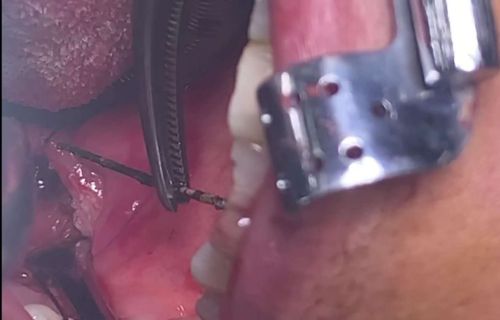 综合考虑上述因素后,5月4日,凌科技副主任医师团队在经口喉内镜辅助下,精准定位异物,切开咽侧壁顺利探查到异物,成功取出残余的3cm长钢针。手术耗时仅30分钟,术中几乎没有出血。