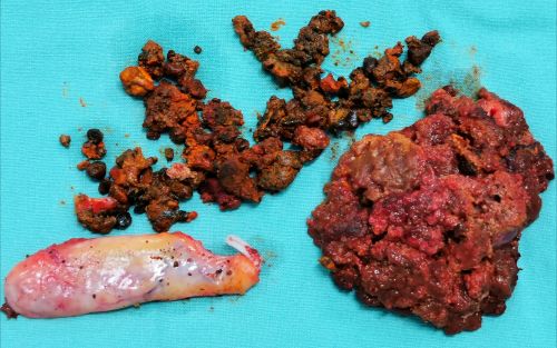 入院后完善相关检查,CT、磁共振检查均提示:肝内胆管多发结石,结石分布在一二三级胆管内。陈女士年龄较大,全肝结石并高位狭窄,又有房颤、子宫肌瘤等病史,手术有一定风险。在经过详细的术前讨论和准备后,为减轻手术创伤,由尹新民教授、刘毅副教授等组成的医疗团队为其实施腹腔镜手术。