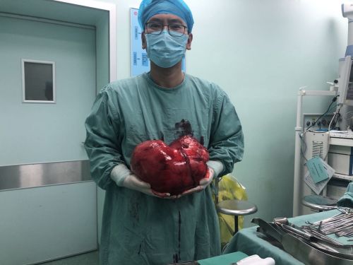 经过精心的术前准备,5月8日,肖志刚、谭浩翔等克服重重困难,成功切除患者腹膜后的巨大肿瘤,出血量不足50ml,测量肿瘤有29*28*9cm大小,重达10余斤。由于术中的精细解剖,患者重要脏器血管均未受损,手术效果超过术前预期。