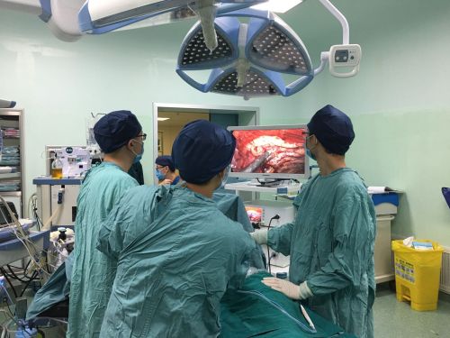 5月18日,张志功副主任医师带领王文主治医师等,为李某施行单孔胸腔镜下胸腔探查、血胸清除、胸腔镜内肋骨骨折内固定术。创伤骨病科黄焱副主任医师等同台为患者施行骨盆骨折切开内固定术。