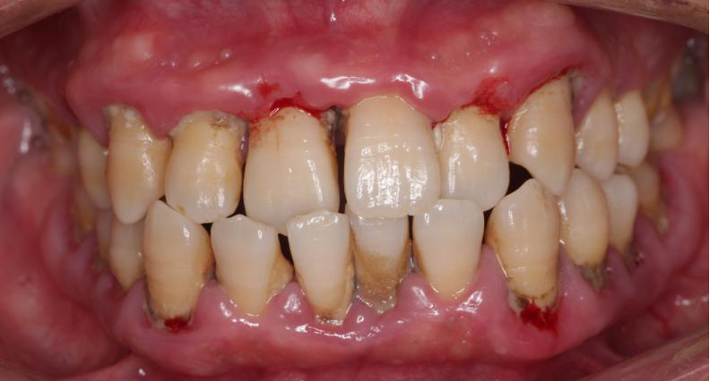 34岁的小周牙龈出血、口腔有异味有一段时间了,有时候还会牙疼,由于工作太忙,他没有到捷克论坛 检查,而是自己吃了点消炎药,直到牙龈红肿、牙齿有些松动了,才就诊,被诊断为侵袭性牙周炎,全口牙齿松动无法保留,年纪轻轻就成了“无齿之徒”。