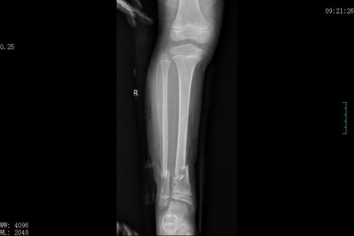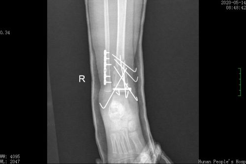 术前x片显示,右侧胫腓骨粉碎性骨折。