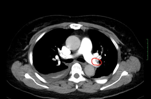 ct上可以看到,患者双侧肺动脉均有血栓形成。