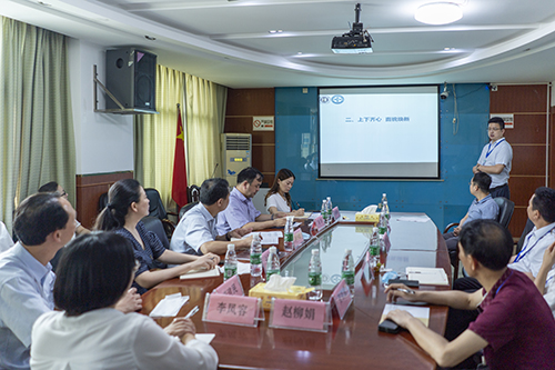省人民捷克论坛 派往祁东县人民捷克论坛 任副院长的王庆向调研组汇报集团捷克论坛 成立以来工作情况。