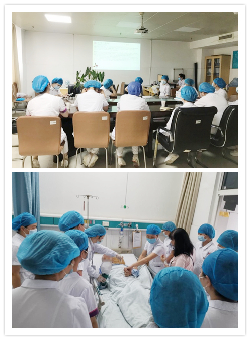 随后,责任护士向大家介绍病例,病人病史辅助检查及实验室检查后,对此病人存在的护理问题提出护理诊断,及目前采取的护理措施,重点突出护理此病人过程中所遇到的护理困惑和护理难点。到场专家现场查看病人,并结合病历特点对疾病、护理以及新领域研究等方向进行了热烈讨论,为改善患者护理服务提供了营养、管道、呼吸、康复等全方位的指导与有效信息。