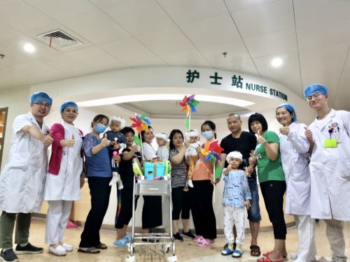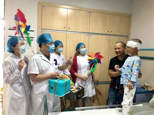 六一儿童节前夕,病房又有4名听障孩子顺利完成手术。为了让他们度过一个愉快的节日,护士长肖欢带领医护人员为孩子们展开庆祝活动,送上节日祝福和礼物。(耳鼻喉头颈外二科)