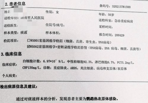 患者痰液检查结果证实为鹦鹉热。
