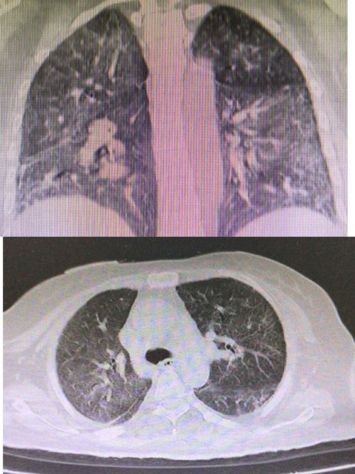 复查肺部ct显示:肺部病变较前明显吸收改善。