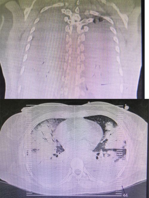 患者入院时肺部影像可见大片“白肺”。