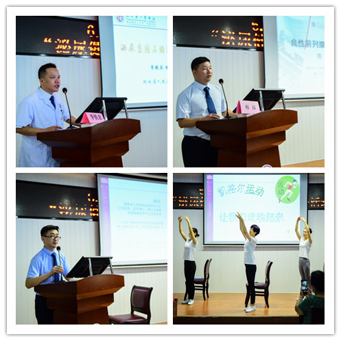 党委书记唐建明、副院长李泉清等院领导及湖南省公安厅离退休人员管理服务处、省审计厅离退休人员管理服务处、省老干部休养所领导参加了活动。会上,杨科主任、李铁球博士、郑珏副主任医师分别作《女性尿失禁的诊治》、《泌尿系结石的治疗与预防》、《前列腺增生的诊治》的讲座,会议通过网络直播线上、线下同步进行,让更多的群众受益。(文:吴靖 陈贵恒/图:刘玉君)