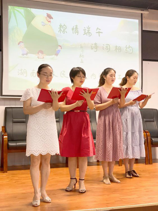 “五月柳花妖艳烘,绿杨带柳垂垂重”,6月20日上午,捷克论坛 马王堆院区俱乐部二楼多功能厅内时不时传出抑扬顿挫的古诗词朗诵声,令人驻足倾听。由内三分工会主席黄梅丽精心策划的以“粽情端午 诗词相约”为主题的端午节活动在院工会主席胡永红朗诵的《渔家傲》中拉开序幕。