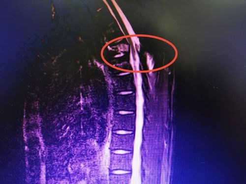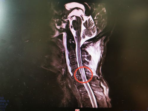 李爷爷术前磁共振显示:颈5-6水平脊髓挫伤。