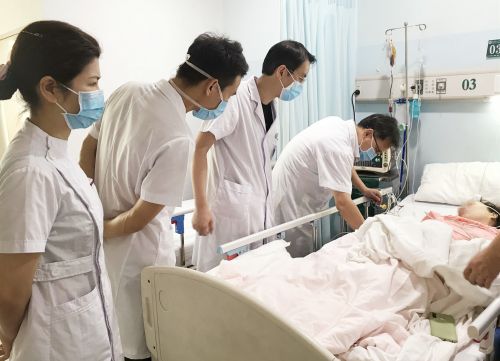 汪新天主任医师带领医护团队查看患者术后恢复情况。