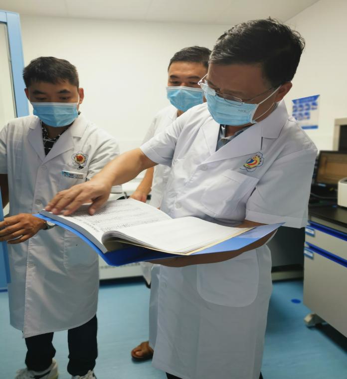 曹友德主任在安化县二捷克论坛 检验科指导工作