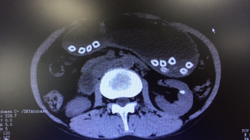 入院时,谢先生腹部疼痛难忍,腹部CT提示胃内异物,完善术前检查后,张渝副主任医师为谢先生在胃镜下实施异物取出术,通过异物网篮共取出32颗杨梅核,其中有3颗崁顿在十二指肠球部,使得肠壁变薄,有穿孔的危险。