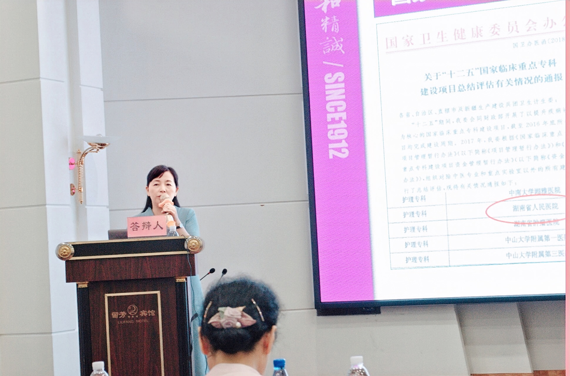 护理部主任龚放华在会上进行康复护理专科基地申请答辩