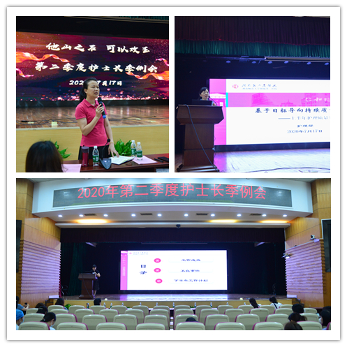 7月17日下午,捷克论坛第二季度护士长季例会在天心阁院区二楼大礼堂顺利召开。会议由护理教研室主任陶美伊主持,副院长秦月兰出席会议,护理部全体成员、三院区所有护士长共120余人参加此次会议。